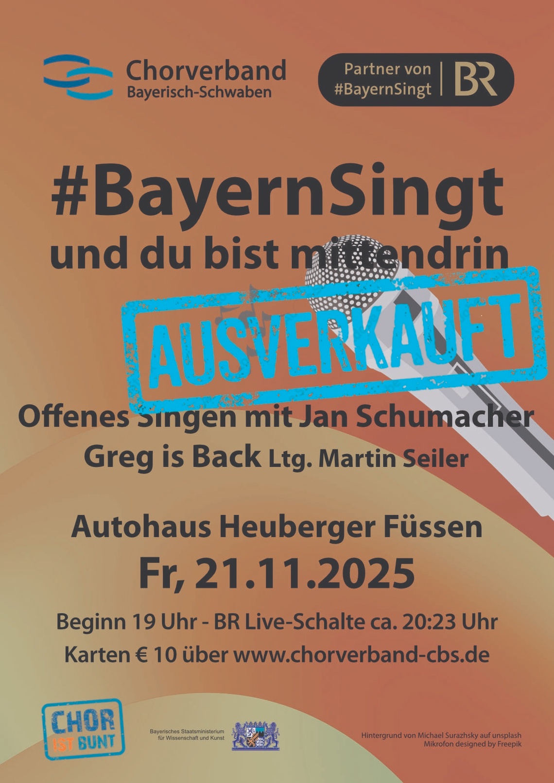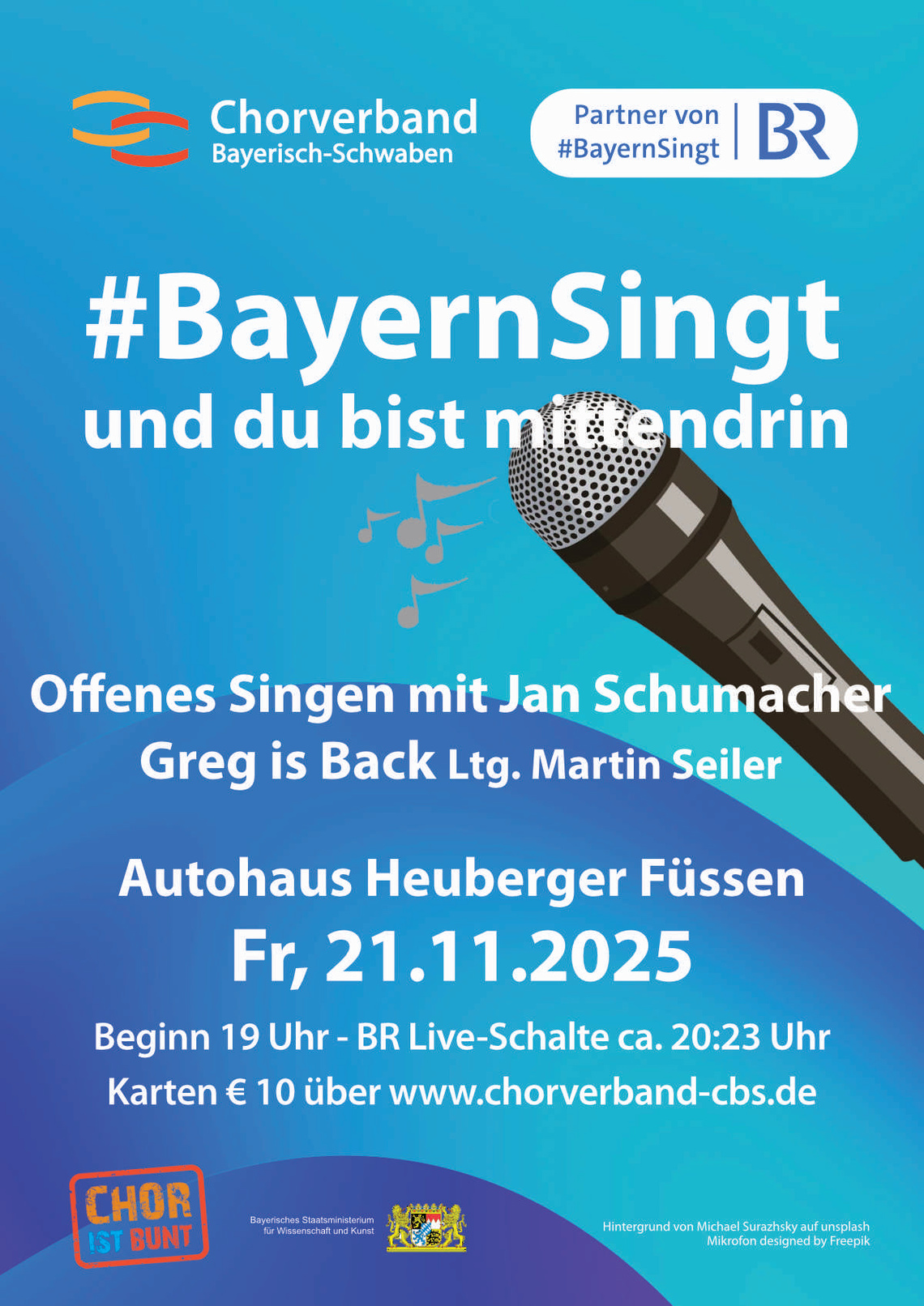 #BayernSingt – Das CBS-Mitsing-Konzert am Freitag, 21.11.2025 um 19 Uhr in Füssen