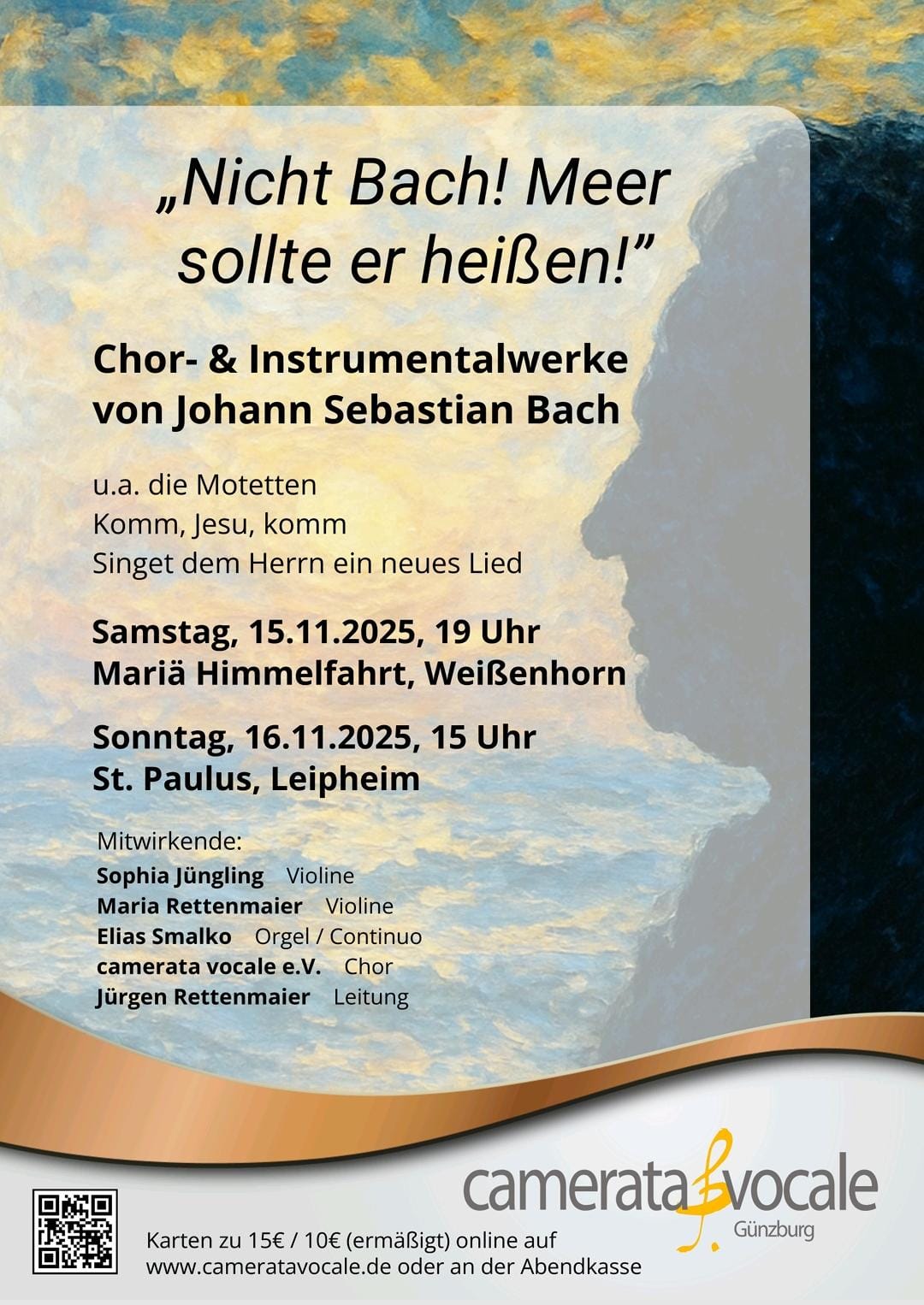 Mit einem festlichen Chor- und Instrumentalkonzert erinnert der Chor camerata vocale e.V. aus Günzburg unter der Leitung von Jürgen Rettenmaier an den unvergleichlichen Meister barocker Klangkunst.