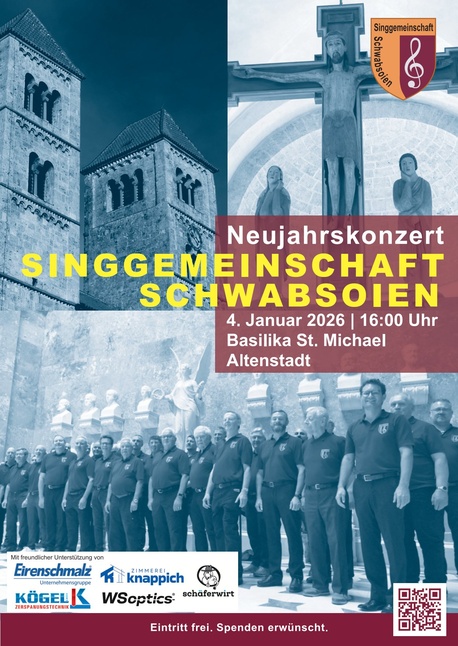 04. Januar 2026 - 16:00 Uhr Basilika St. Michael Altenstadt Datum: 4. Januar 2026 Uhrzeit: 16:00 Uhr Ort: Basilika St. Michael Altenstadt Link: www.singgemeinschaft-schwabsoien.de zurück